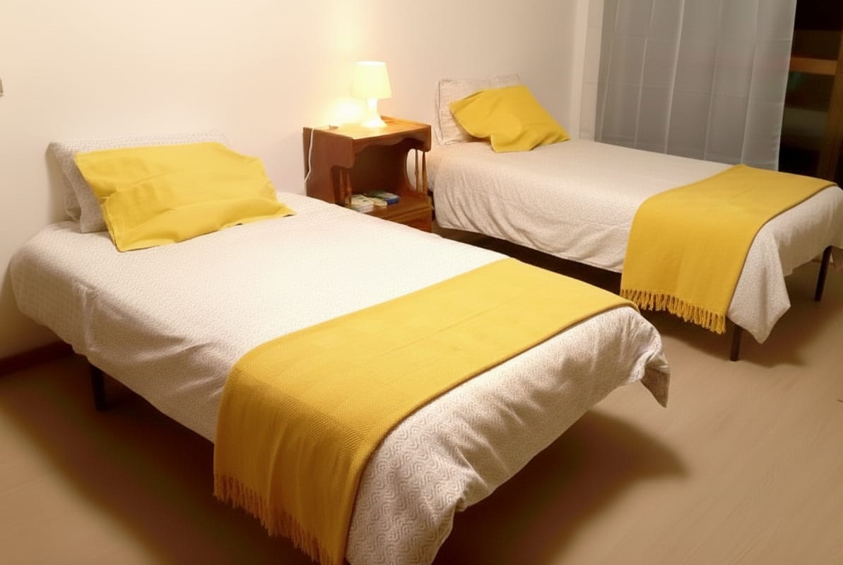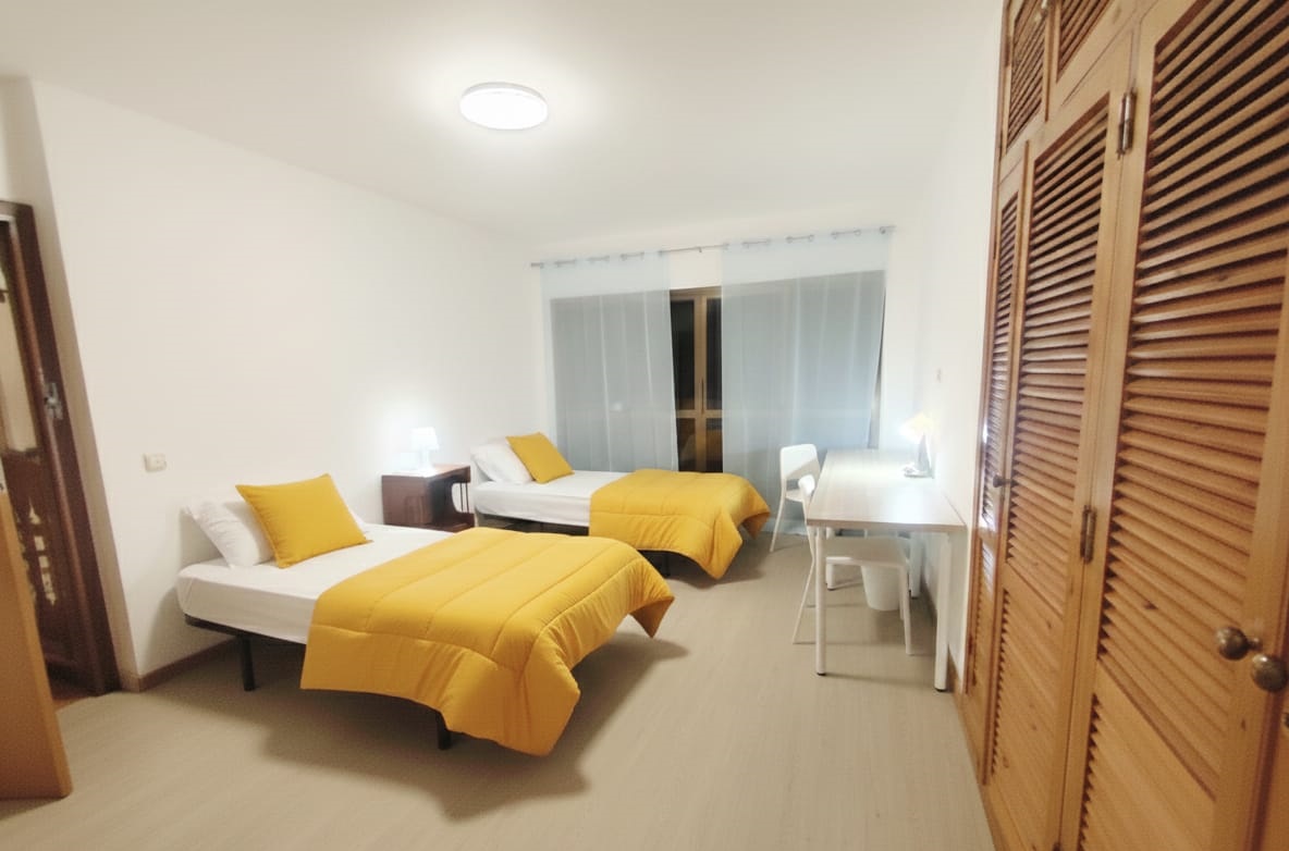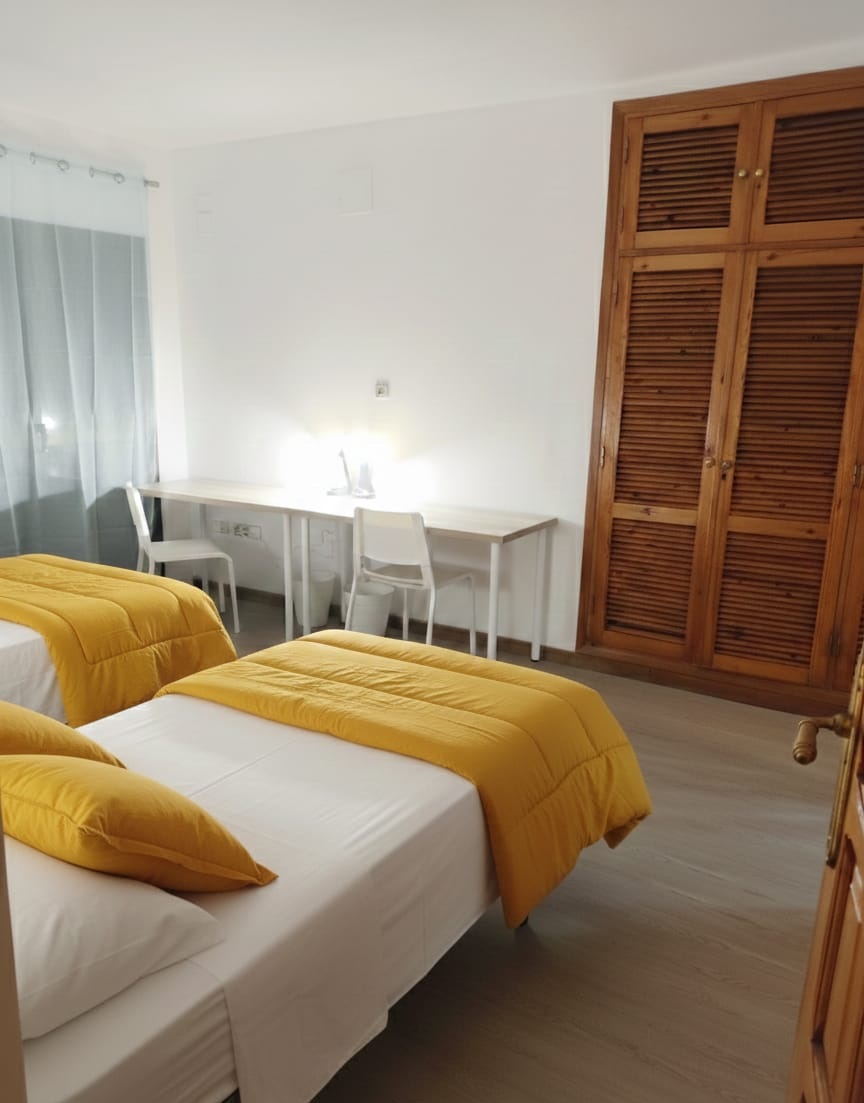 La habitación amarilla es una espaciosa habitación doble, ideal para compartir con un compañero o compañera durante tu etapa universitaria. Disfrutaréis de un ambiente luminoso y acogedor, pensado para el estudio y la buena convivencia.. 🛏️👥✨